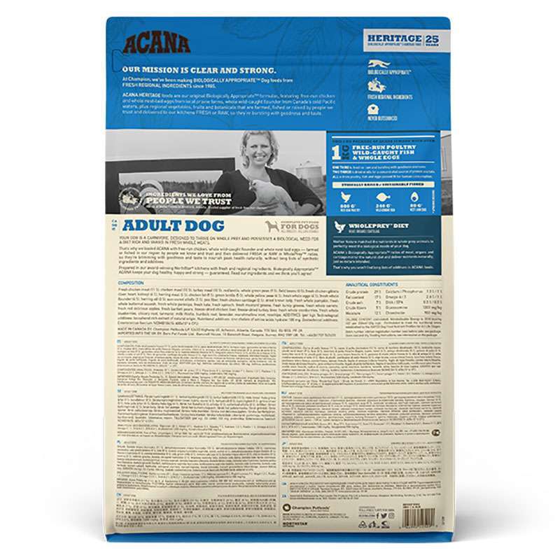 Свіжі м’ясні інгредієнти в найбільш живильним і натуральній формі. 1/3 м’ясних інгредієнтів у кормах АКАНА з птиці, риби і яєць є дійсно свіжими, переповненими користю і смаком. Інші 2/3 – це висушені м’ясні інгредієнти – багате джерело природних протеїнів. Всі м’ясні інгредієнти визнані придатними для вживання в їжу людям.